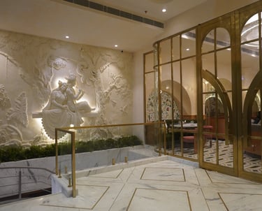 At Krishnaay, we have thoughtfully designed our space to reflect the warmth of Indian hospitality blended with the sophistication of fine dining. Our interiors feature soft lighting, soothing colors, comfortable seating, and a calm, balanced ambience that invites you to pause, relax, and enjoy the moment. As a pure veg fine dining restaurant in Navi Mumbai, we believe that dining is not just about food — it is about the company you share it with.